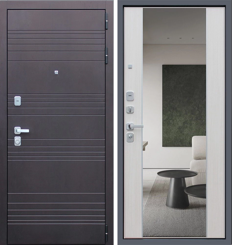 Надежная входная Дверь Дуэт с зеркалом премиум класса по цене 49 550 руб. Большая толщина стали защитит от проникновения в ваш дом, квартиру или коттедж. Используется очень качественная фурнитура: замки, цилиндры, ручки, защелки. Покрытие и отделка двери изготовлено под внимательным контролем производителя. Дверь имеет долгий срок службы и гарантию.